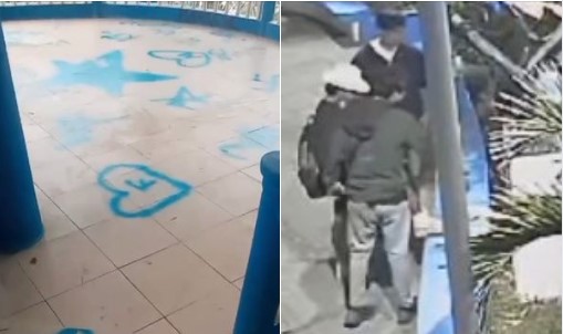 Cuatro sujetos desadaptados quedaron registrados realizando pintas en el mirador y boulevard de la punta de Tahuishco, en la ciudad de Moyobamba, hecho registrado en horas de la noche del último fin de semana.