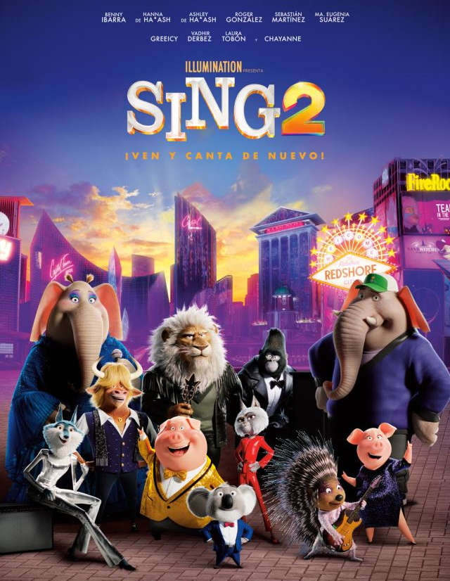 SING 2, VEN Y CANTA DE NUEVO (apto para todos): Buster Moon y su elenco de animales artistas se preparan para lanzar un deslumbrante espectáculo escénico en la capital mundial del entretenimiento.