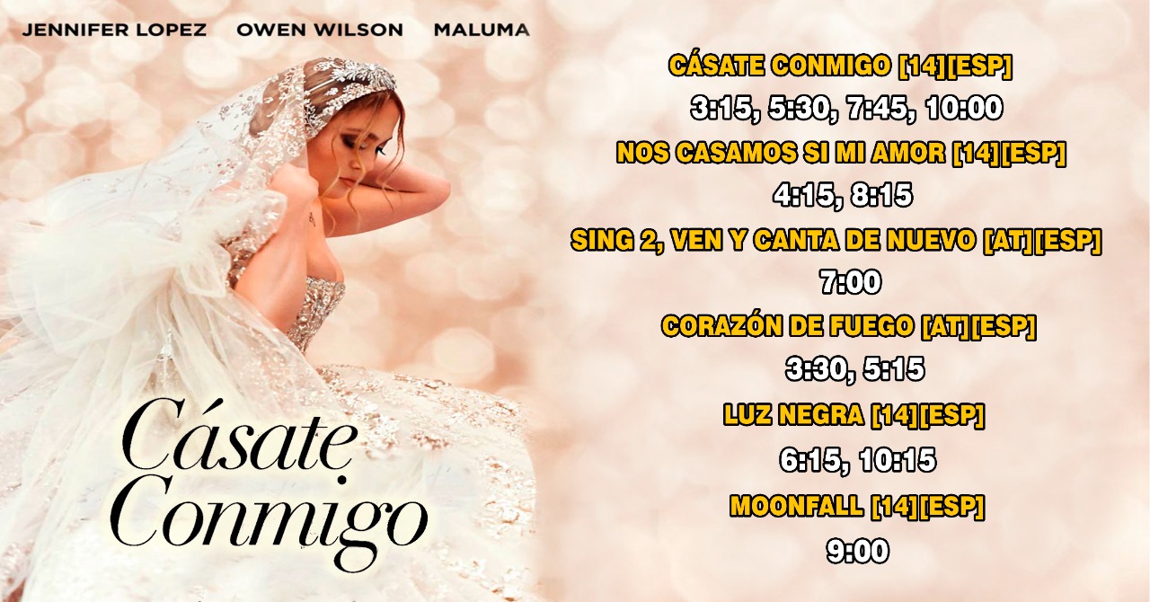 Esta es la cartelera ya disponible para esta semana, !QUE NO TE LO CUENTEN¡. Acude con tus amigos y familiares con los protocolos ya conocidos.
