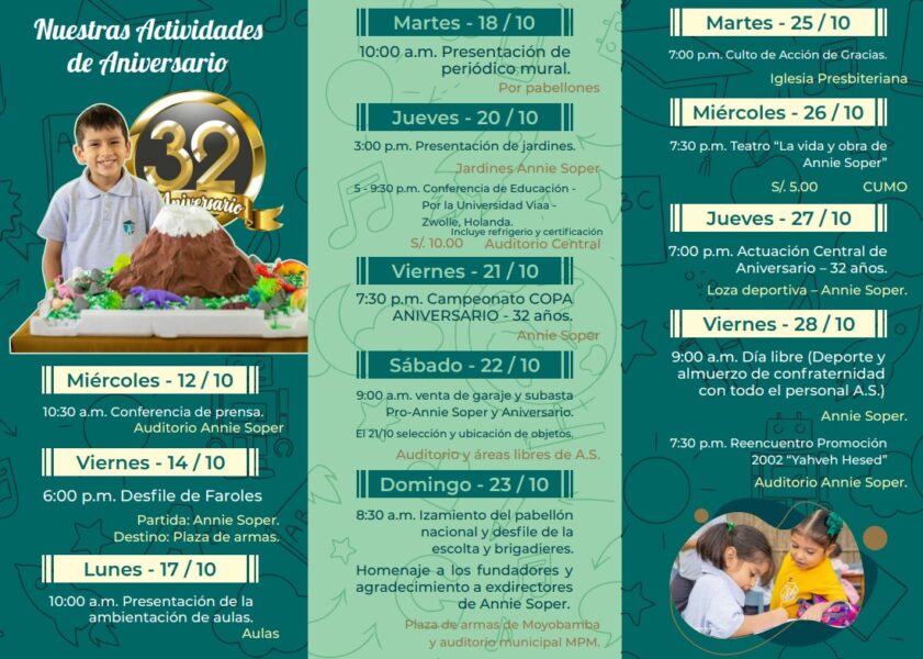 Colegio Annie Soper celebra sus 32° aniversario con actividades culturales, deportivas y cristianas
